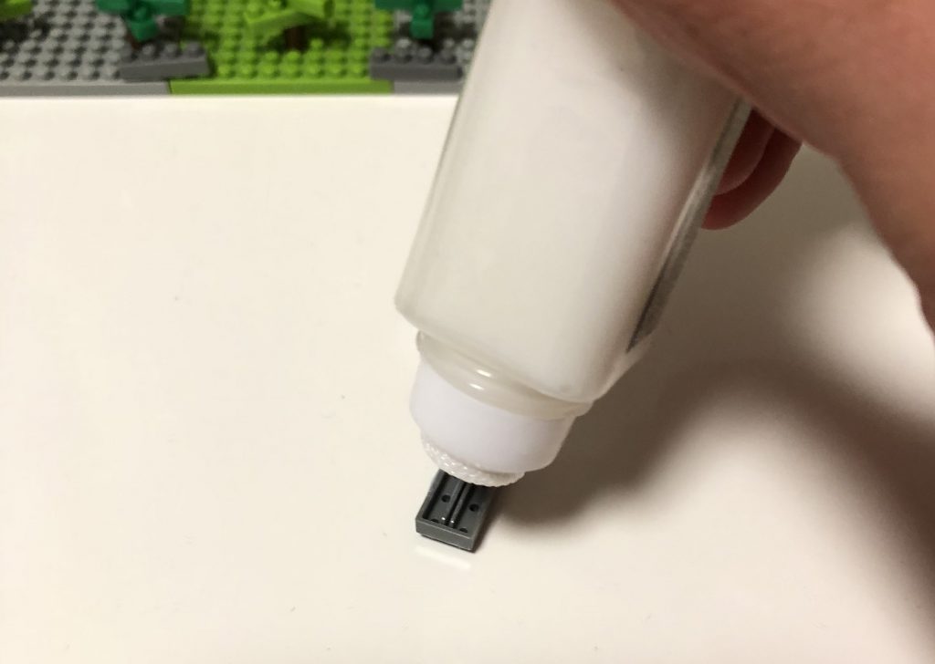 使用箇所によって、2つのノズルが備わっています。細いノズルがブロックのポッチ用で、のりの先端みたいなノズルがブロック底面用です。