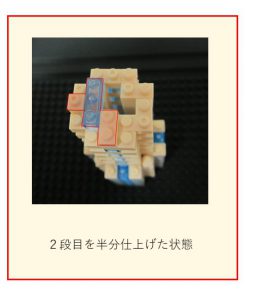2段目は、クリアブルー【1凸1】を4つ付けるだけなんで簡単ですね。