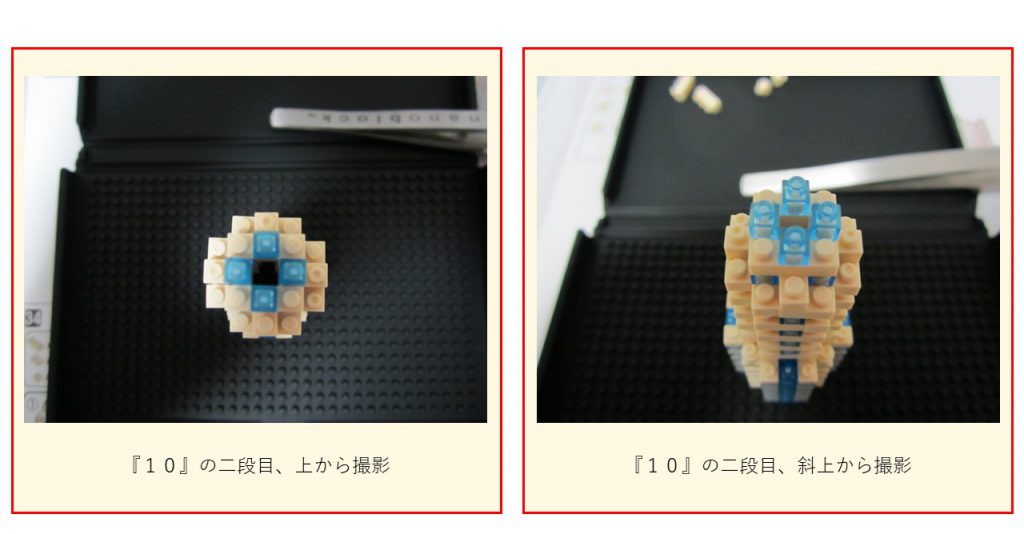 『10』では、1段目の【1凸3】の取り付けだけは気をつけて行います。下段の【1凸2】がグニュってなっちゃうからね。