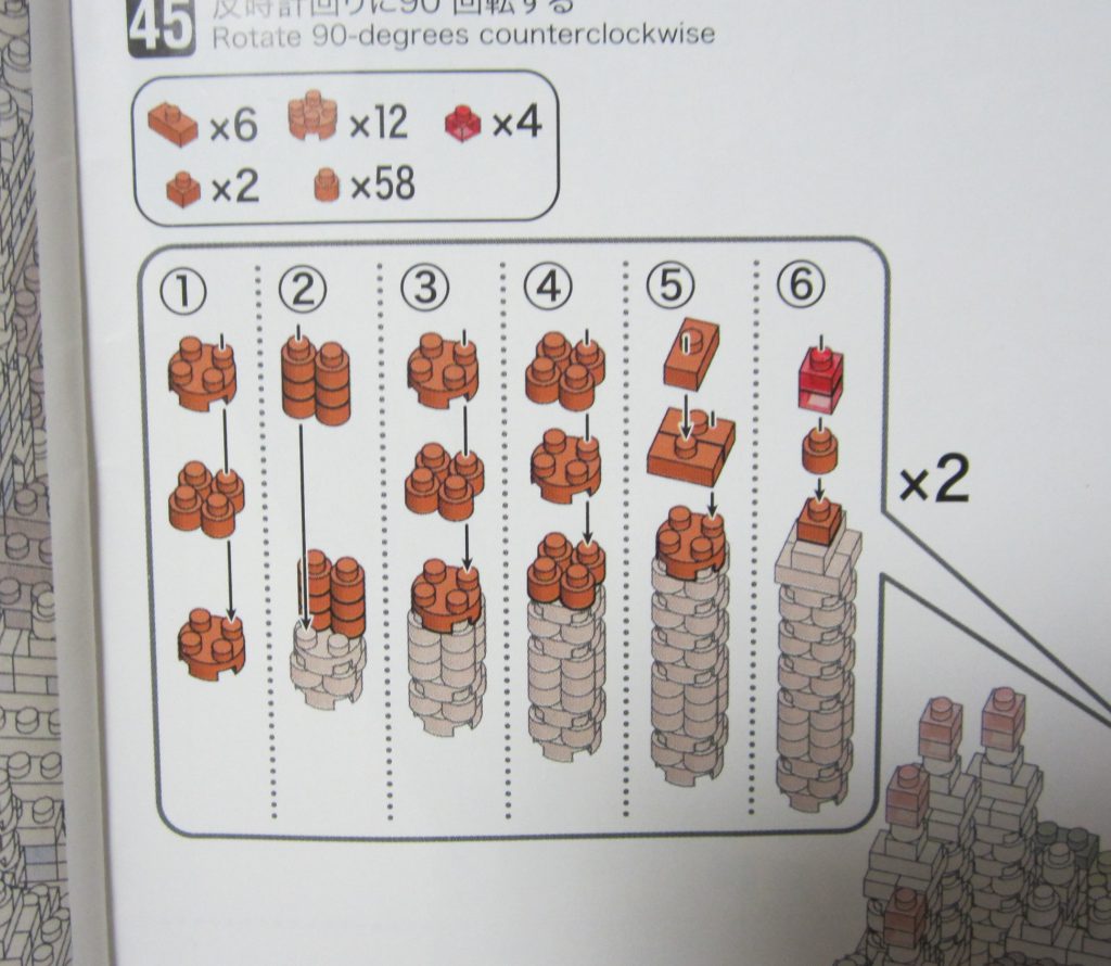 手順45は、2つの塔パーツを作り本体に取り付ける作業です。