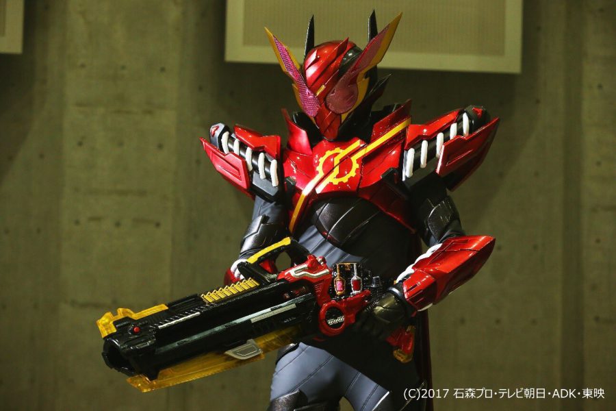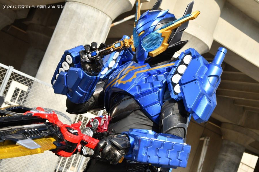 肩の砲台とかガタックのマスクドフォームみたいだし、マスクの配色は青と金でガタックハイパーフォームみたいだよね(笑)