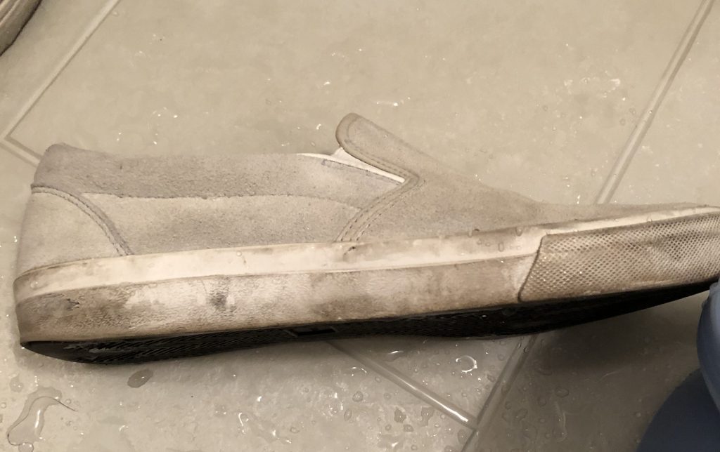 まずはスエード調のスリップオン。2、3年?履いて結構な黒ずみ・・・。