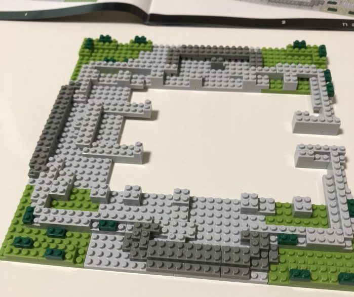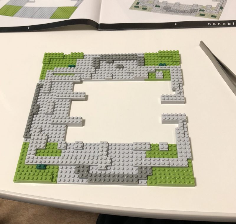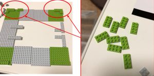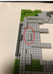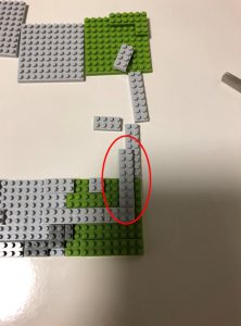 内側に向かって出っ張っている2つの部品の左辺に揃えて、上下は中心に配置します。(上下とも1凸ずつ空く)