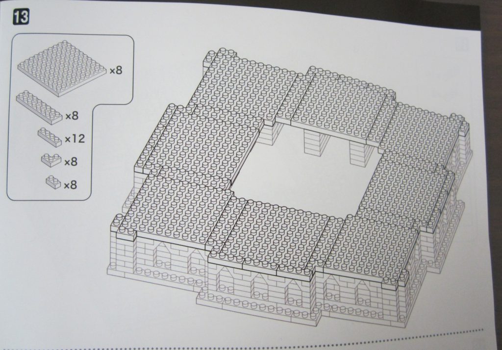 ステップ12まで土台の骨組みともいえる部分をつくってきたわけですが、ステップ13で土台が完成するので、最後の骨組みです。総ブロック数は83個。