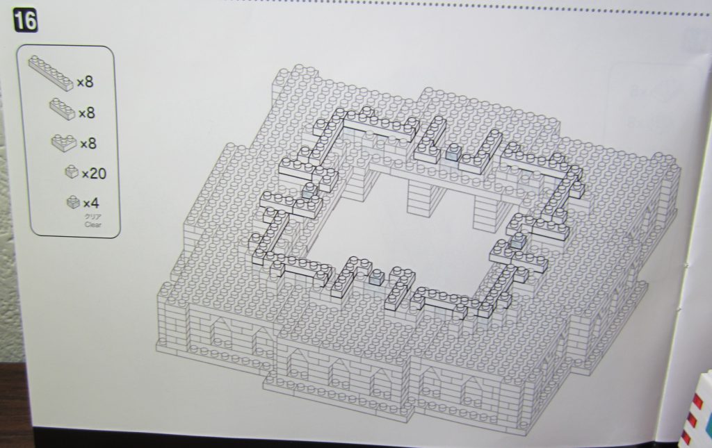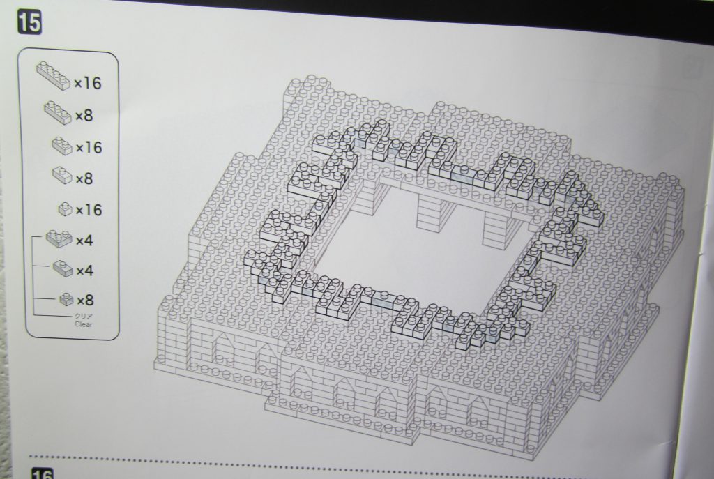 ステップ14と同じ流れの作業。扱うブロック数は80個。クリアブロックは取り付け間違いのないようにしっかり説明図を確認します。