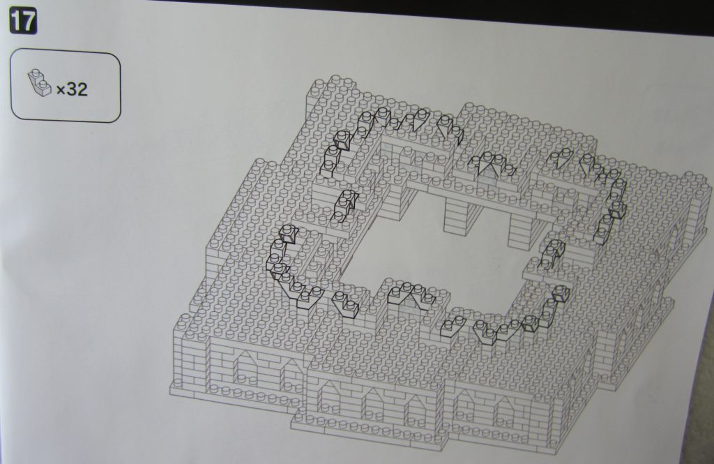 下段との噛み合わせは1ポッチで内側にはみ出して取り付けるブロック(【1×2.L型】)があったり・・・と簡素な見た目の説明図の割に神経を使うステップです。