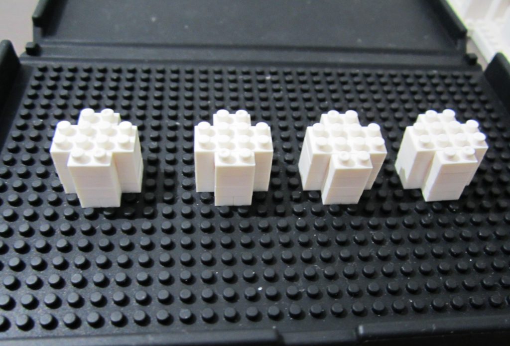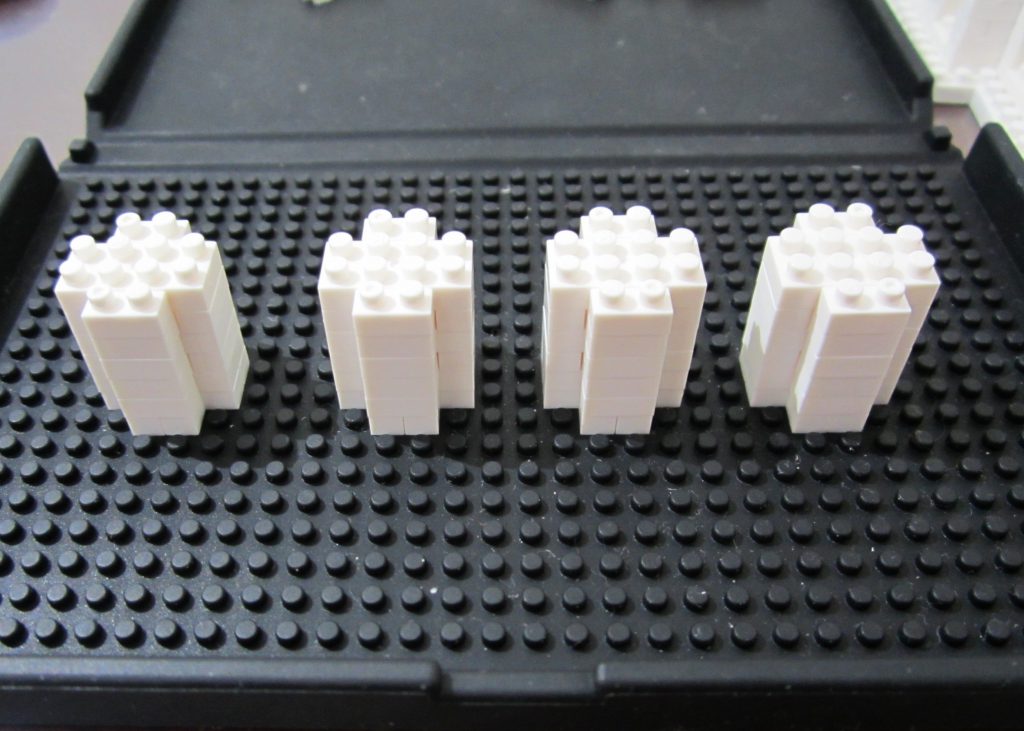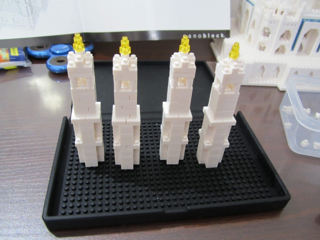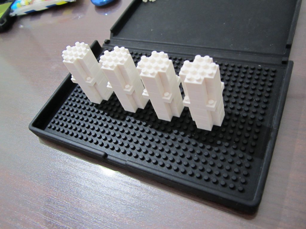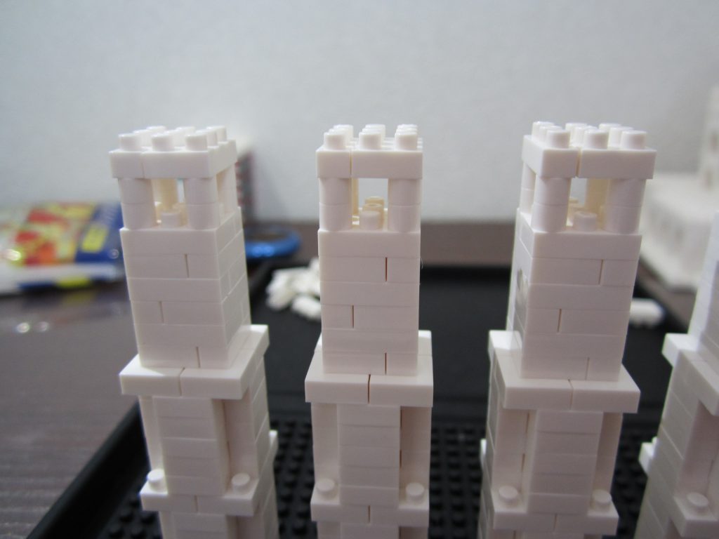 制作本体の四隅に取り付ける、柱?塔?みたいなパーツを作ります。同じものを4つ作るので並べてまとめて作った方が作業効率は良いです。